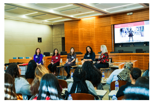 After their tour to the various asset class departments, five women shared where they came from and how they got to CalSTRS and CalPERS. These included: