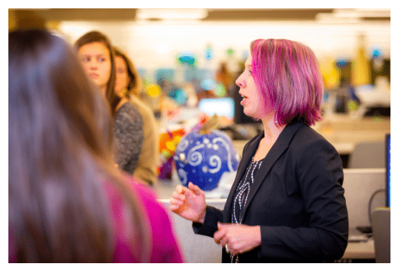 After their tour to the various asset class departments, five women shared where they came from and how they got to CalSTRS and CalPERS. These included: